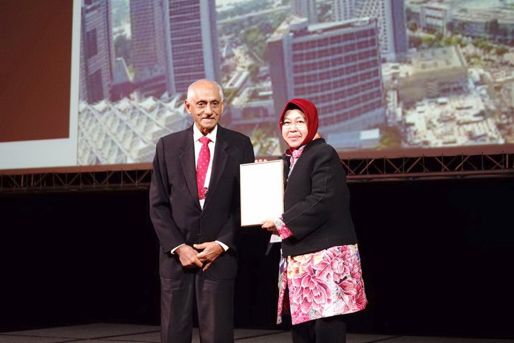 Surabaya – Pemerintah Kota Surabaya resmi menerima piagam penghargaan Lee Kuan Yew World City Prize kategori Special Mention saat acara World Cities Summit (WCS) 2018 di Marina Bay Sands Expo and Convention Center, Singapura, (09/07/2018).