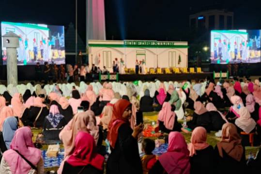 Surabaya – Ribuan warga ikut memeriahkan puncak peringatan Hari Santri Nasional (HSN) yang digelar PCNU Surabaya di Tugu Pahlawan, Surabaya, Selasa (30/10/2024) malam.