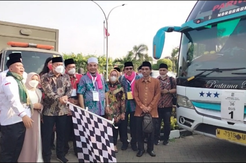 Calon jemaah haji (CJH) kloter 36 ini dilepas oleh Wali Kota Eri Cahyadi dihadiri oleh Komisi A DPRD Kota Surabaya