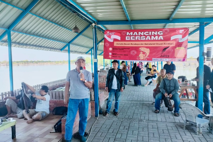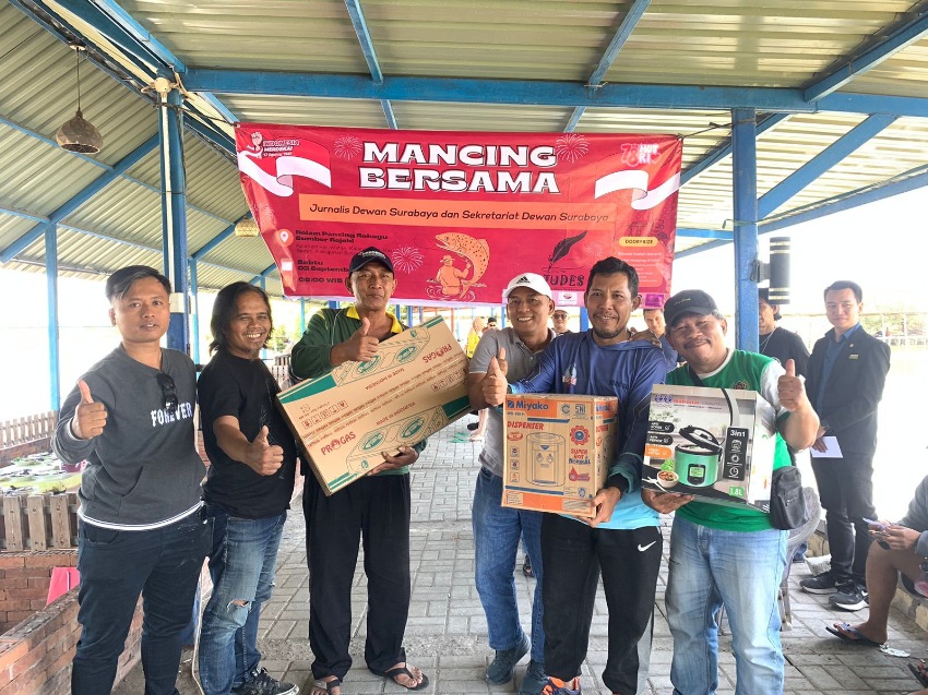 Surabaya – Puncak Peringatan HUT ke-78 Kemerdekaan RI, Pokja Jurnalis Dewan Surabaya dan Sekretariat Dewan (Sekwan) Surabaya menggelar acara “Mancing Bersama’.