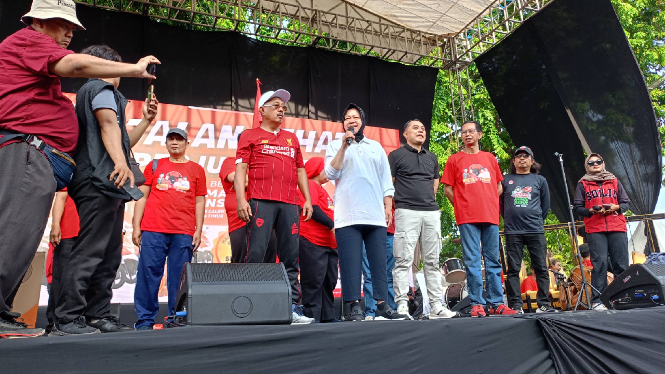 “Soale Gratis,” kata Risma dihadapan peserta jalan sehat.