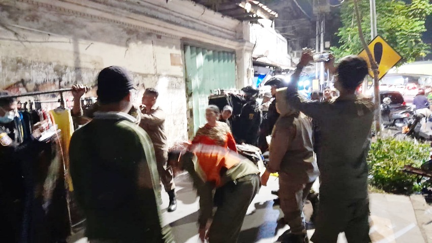 “Dilakukan penertiban dengan diamankan beberapa alat peraga dengan humanis dan persuasif. Namun begitu, ketika akan selesai, ada yang memprovokasi dengan teriak-teriak dan mendorong anggota Satpol. Dan anggota mencoba untuk minta diam dan tidak memprovokasi,” ungkapnya.