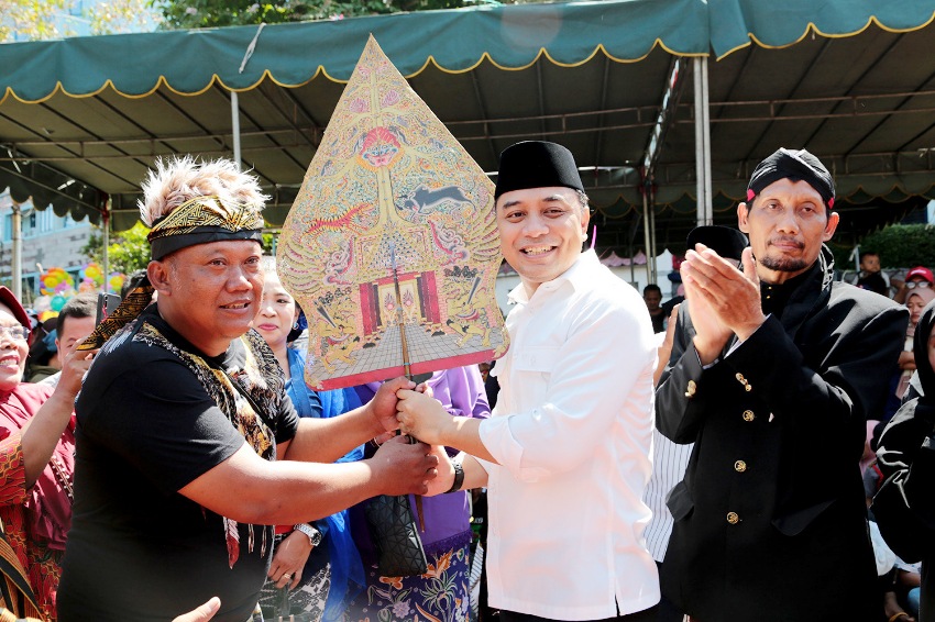 Bahkan, Wali Kota Eri juga mendapat Gunungan Wayang dari masyarakat setempat yang diwakili oleh Ketua RW 06 Kelurahan Dukuh Kupang, Kecamatan Dukuh Pakis Surabaya.