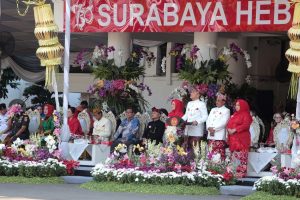 Surabaya – Resepsi upacara peringatan Hari Jadi Kota Surabaya (HJKS) Ke-730 berjalan hikmat di halaman