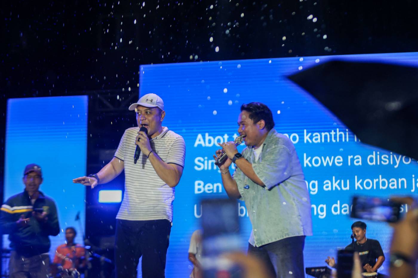 Meskipun diguyur hujan, semangat penonton tidak surut, dan konser yang menampilkan grup musik pop jawa “Guyon Waton” sebagai bintang utama tetap berlangsung meriah.