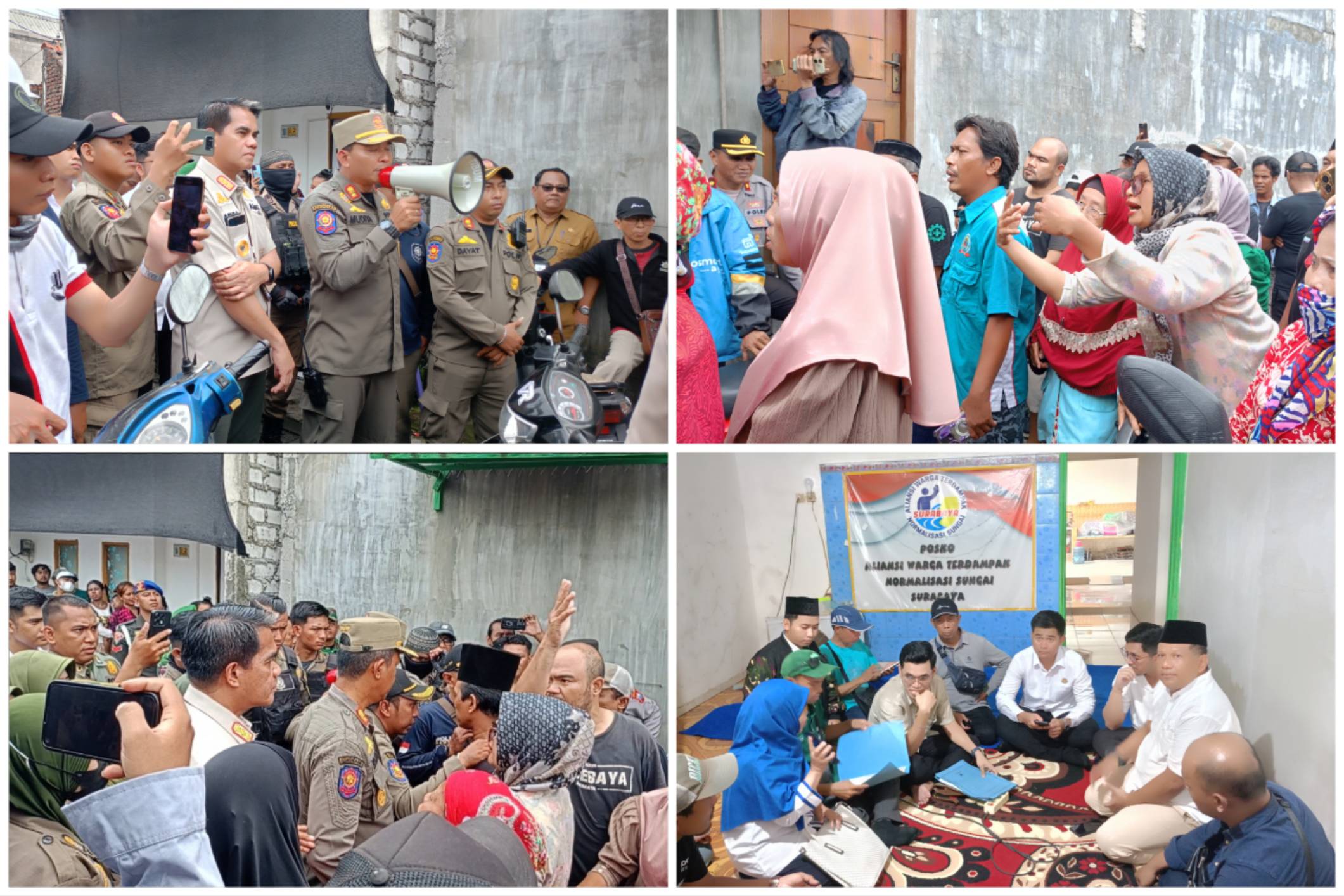 Surabaya – Ratusan warga RT 9 / RW 6 Tambak Asri Kelurahan Morokrembangan Kecamatan Krembangan Surabaya menolak penandaan rumah dalam program normalisasi sungai kalianak tahap II pada Senin (23/2/2026) pagi