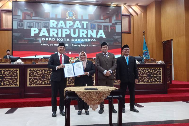 Surabaya – Pemerintah Kota (Pemkot) Surabaya bersama DPRD mengesahkan Peraturan Daerah (Perda) tentang Hunian Yang Layak dalam rapat paripurna yang digelar di Gedung DPRD Kota Surabaya, Senin (30/3/2026).